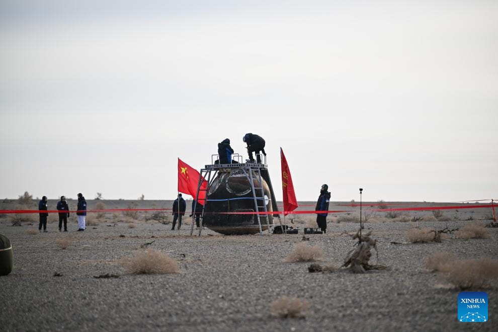 Capsula Shenzhou-20, avariată în urma unui impact cu un deșeu orbital de mici dimensiuni a revenit în 19 ianuarie pe Pământ, fără echipaj, în jurul orei 01:00 UTC, în regiunea autonomă Mongolia Interioară, conform planului. Avaria Shenzhou-20 a făcut ca Shenzhou-21 să fie lansată mult mai devreme, pentru ca echipajul de la bordul stației spațiale Tiangong să poată fi evacuat în siguranță, dacă va fi nevoie.